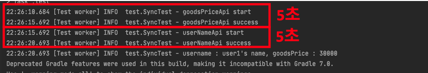 각 API는 모두 5초의 응답시간이 있는 상황입니다.