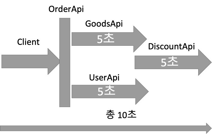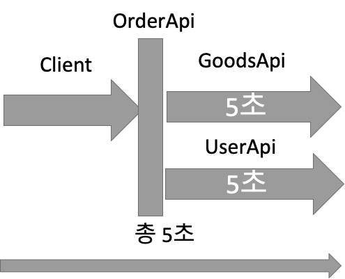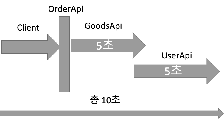 결국 주문 API는 총 10초가 걸리게되고 이는 여러 API를 호출하는 MSA에서는 더욱 문제가 될것입니다.